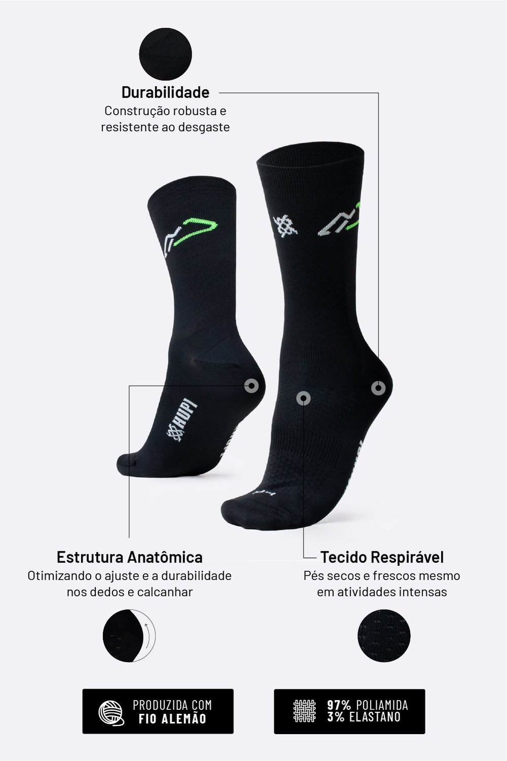 Na HUPI, cada detalhe importa. Por isso, nossas meias esportivas para corrida foram desenvolvidas com poliamida de alta qualidade e estrutura pensada para evitar bolhas, calos e desconfortos durante seus treinos e provas.