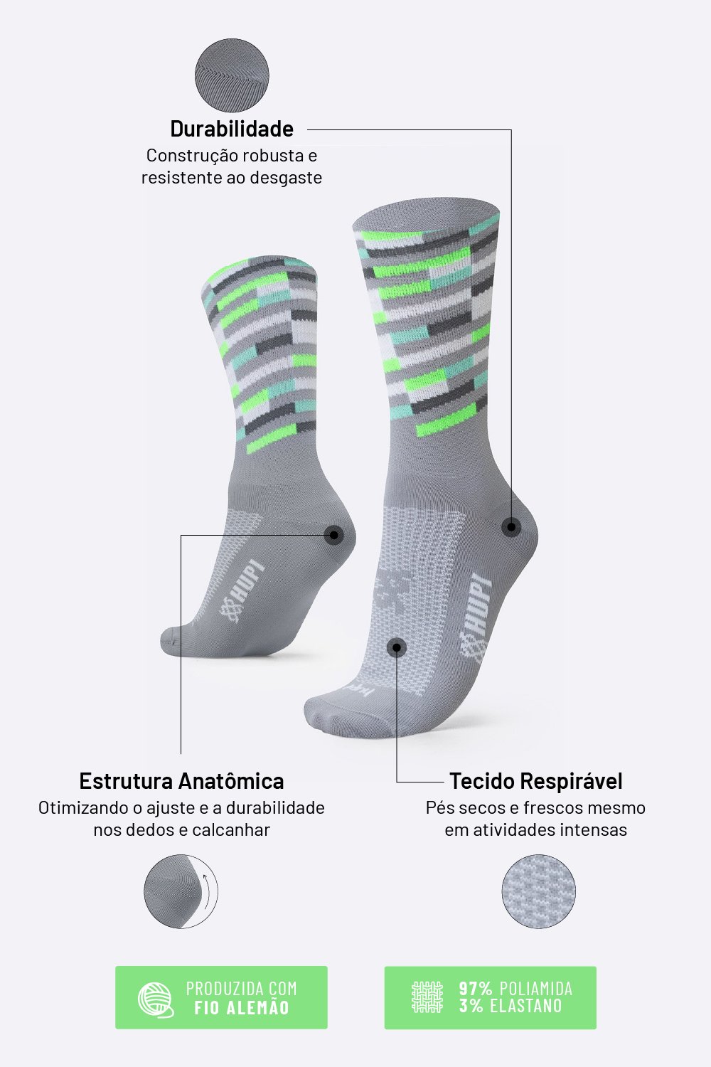 Praticar esportes com conforto e máximo desempenho é o seu objetivo, e também o nosso. Por isso a meia HUPI apresenta diversos destaques que fazem dela um item fundamental.