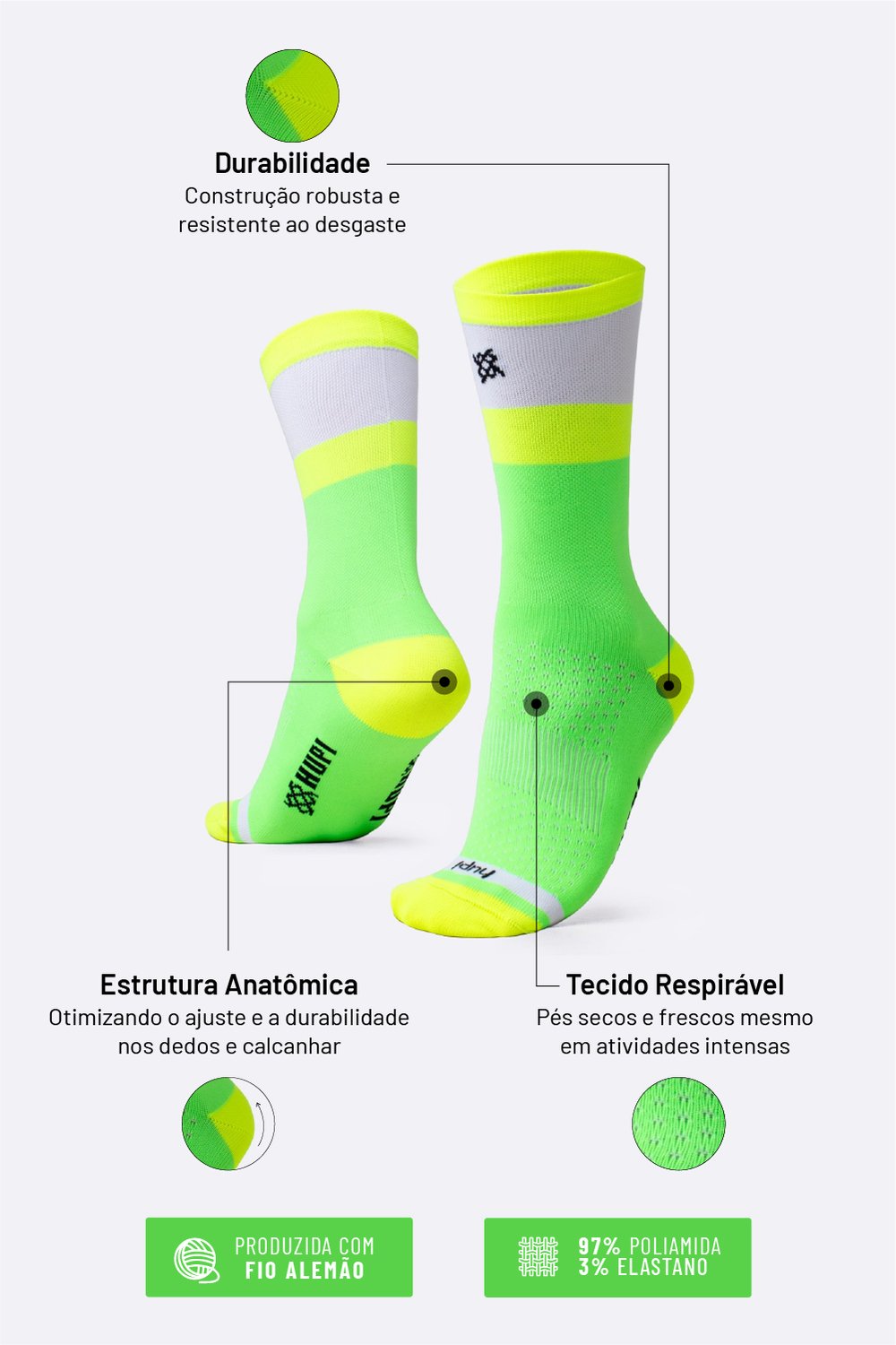 Além do visual diferenciado, essa meia de poliamida entrega respirabilidade avançada, suporte firme e conforto prolongado, permitindo que cada treino ou corrida seja muito mais agradável e seguro.
