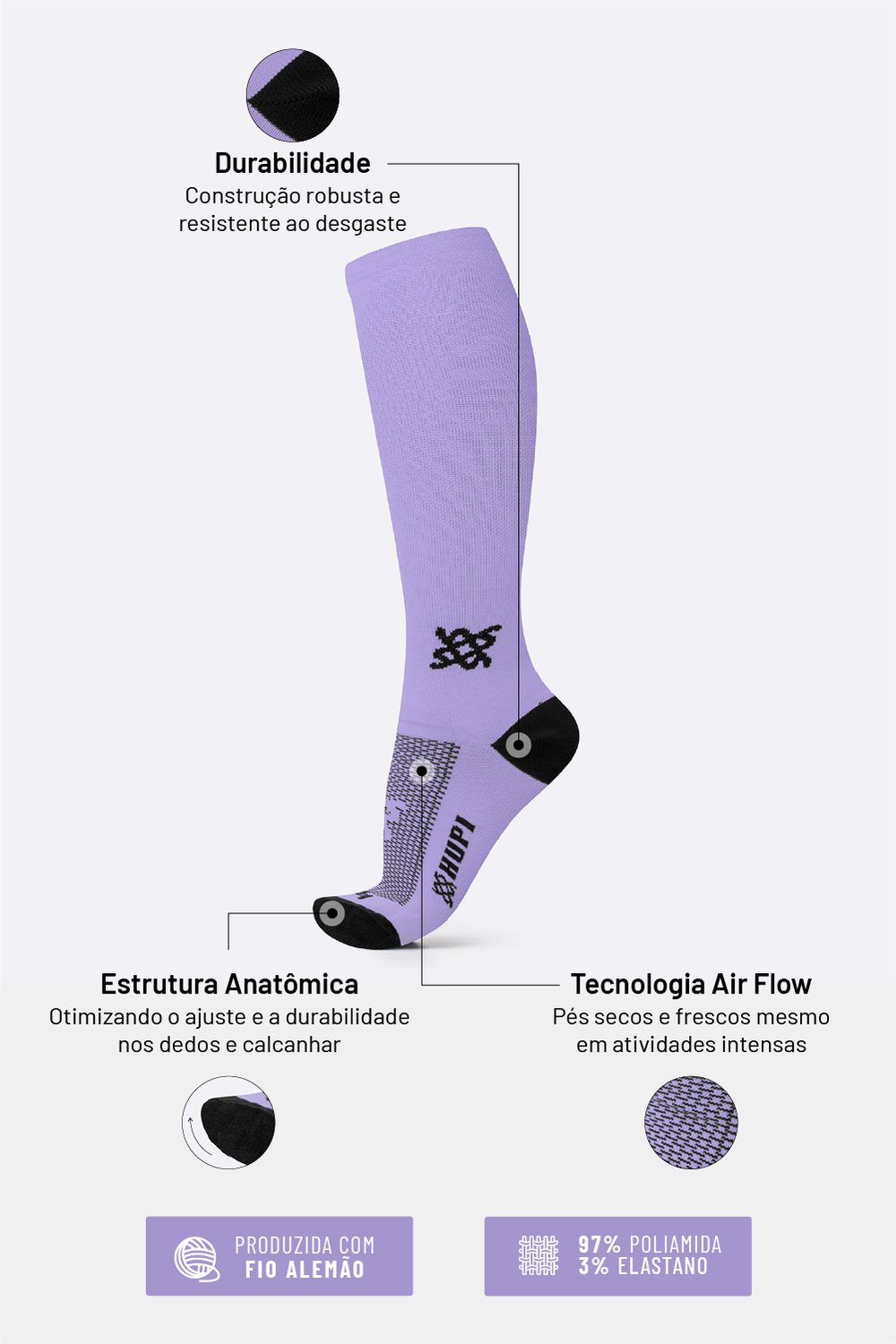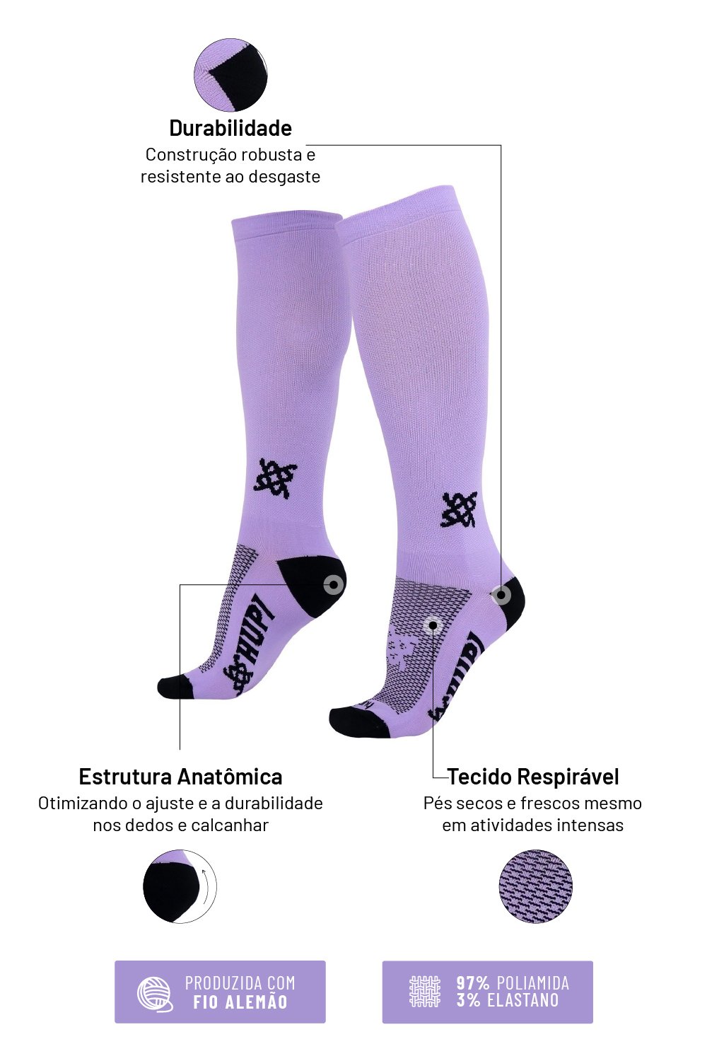 Materiais e Tecnologia da Meia Cano Longo HUPI Roxo Liso