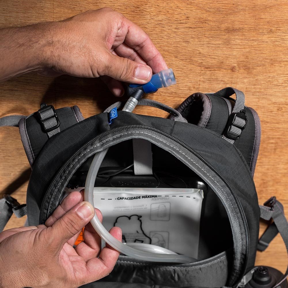 - Diversos bolsos, fitas de ajuste, refletivos para visualização noturna, encaixe para luz de sinalização e compartimento para reservatório de água: Funcionalidade e organização para suas aventuras.