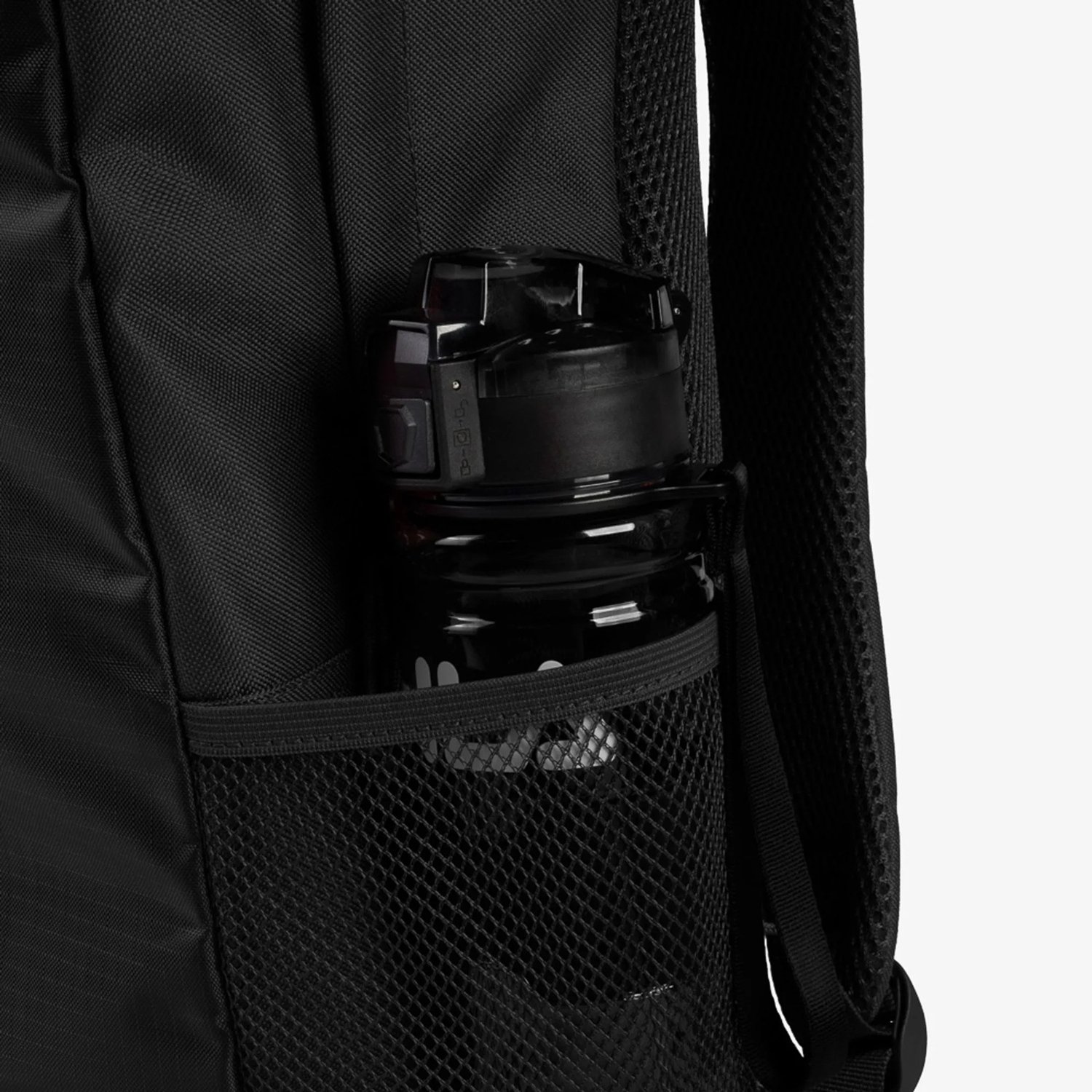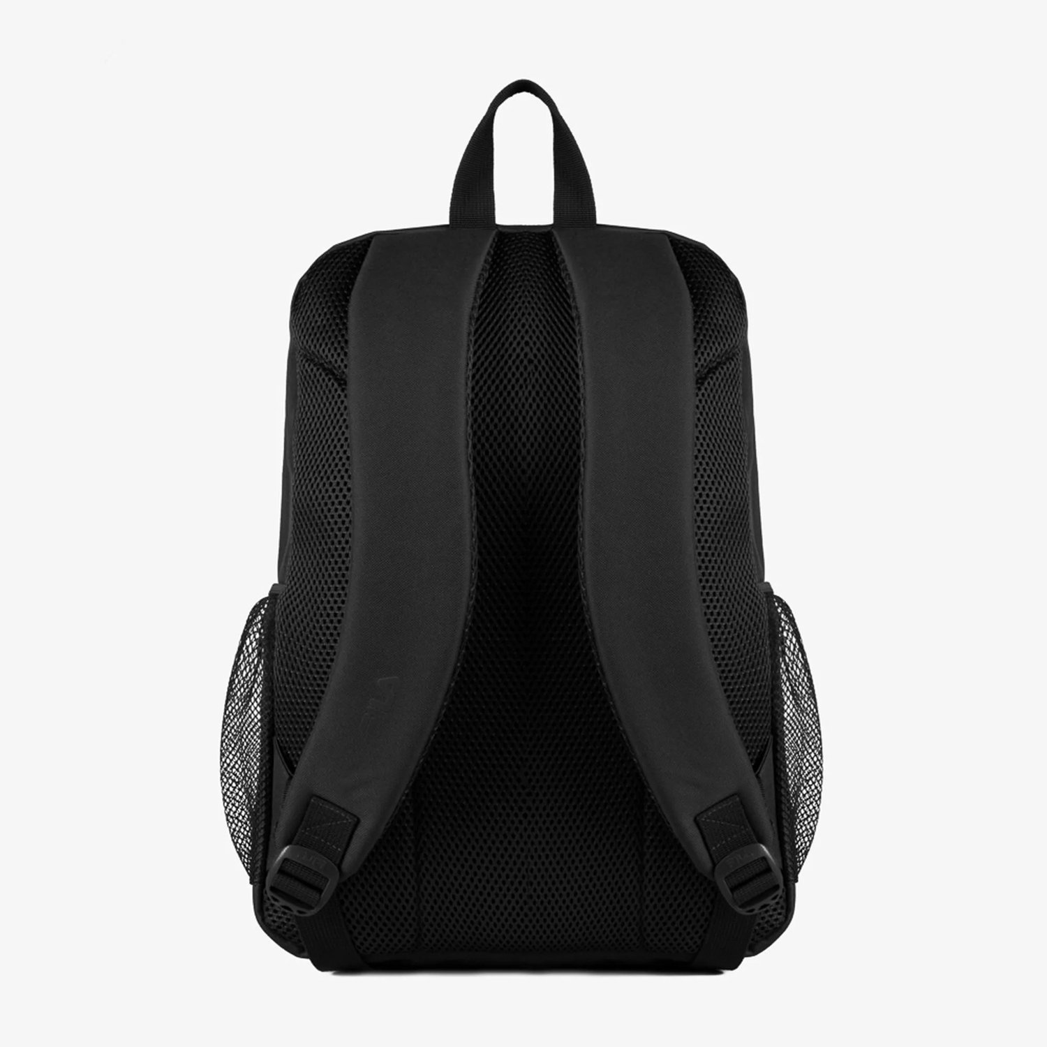 O painel frontal inclui um bolso vertical com zíper, que combina estilo e agilidade para acessar itens essenciais, enquanto os bolsos laterais em mesh facilitam o transporte de garrafas ou objetos de uso rápido.