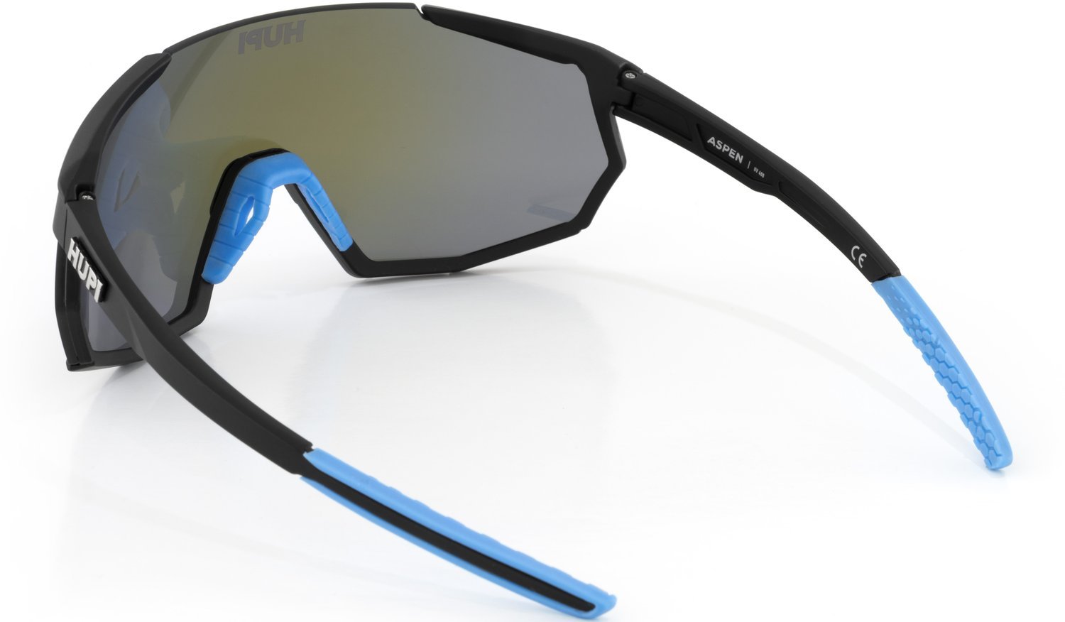 A linha de óculos de sol HUPI Aspen, com armação preta e lentes douradas, foi cuidadosamente projetada para atender às demandas de ciclistas e corredores, combinando estilo moderno com funcionalidade.