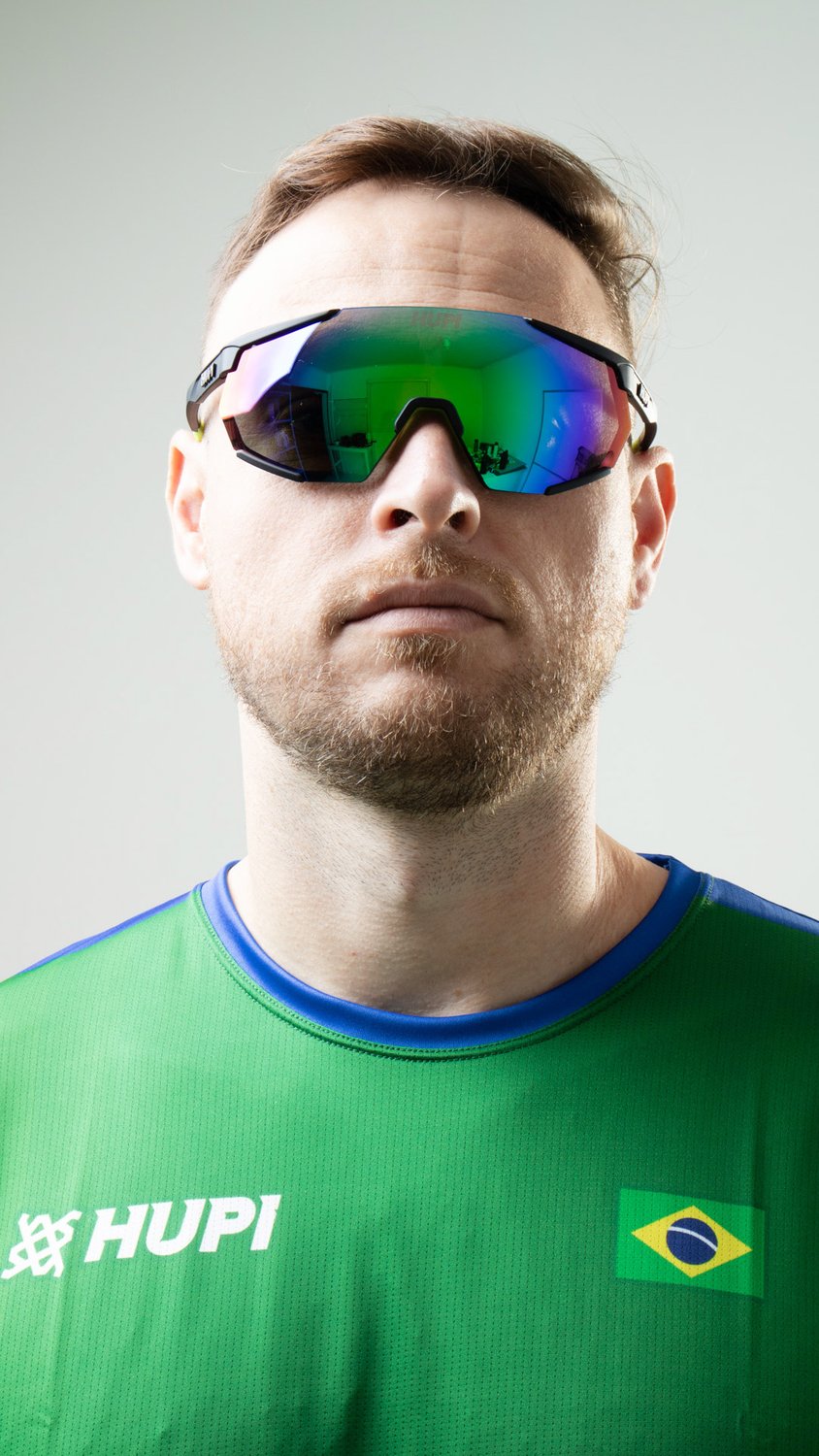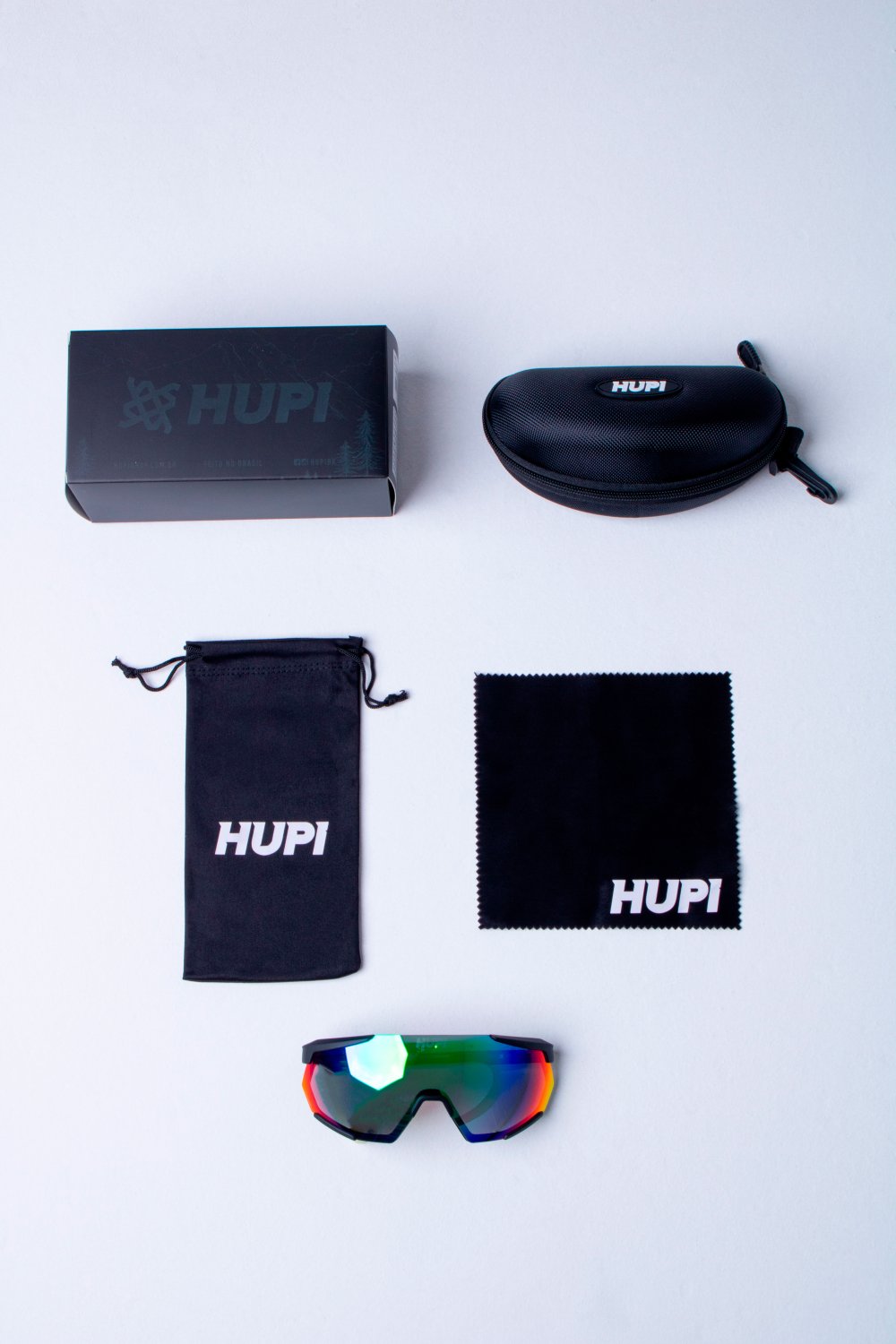Conheça a coleção de óculos de sol HUPI Aspen, com armação preta e lentes douradas, projetada especialmente para atender às necessidades de ciclistas e corredores, combinando estilo moderno com funcionalidade.