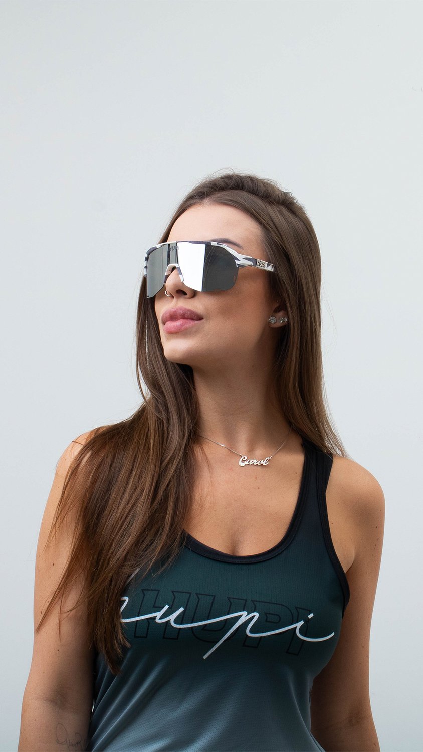 Óculos de Sol HUPI Huez Camo Preto e Cinza - Lente Prata Espelhado