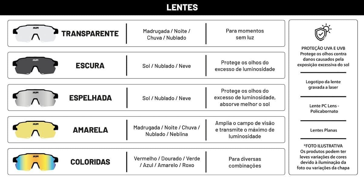 - Os óculos da HUPI possuem proteção UV400 vitalícia.