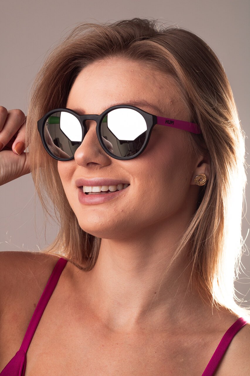 Óculos de Sol HUPI Kona Preto Pink Lente Prata
