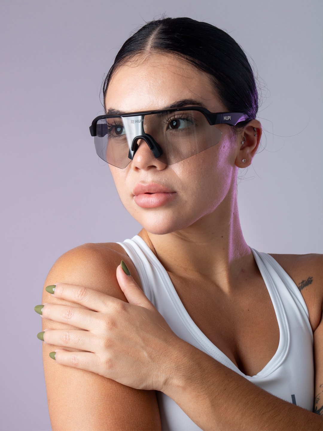 O HUPI Core Preto com lente fotocromática entrega versatilidade inteligente. Como óculos de corrida, adapta-se automaticamente às variações de luz, eliminando a necessidade de troca constante de lentes ao longo do treino.