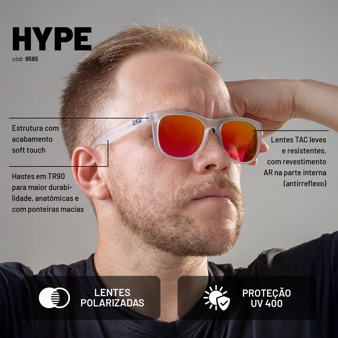 O Hype pode ser utilizado em corridas leves, caminhadas e atividades ao ar livre, além de se adaptar muito bem ao uso urbano diário, viagens e momentos de lazer. Seu encaixe confortável, aliado ao acabamento soft touch e à boa estabilidade no rosto, permite o uso prolongado sem incômodos.