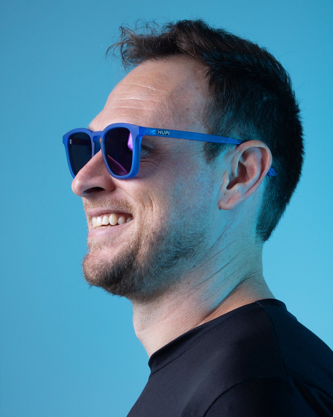 A estrutura do Óculos HUPI Rookie Azul Lente Azul Espelhado é produzida em policarbonato azul cristalizado, material reconhecido pela combinação entre resistência e baixo peso. Toda a armação e as hastes recebem acabamento soft touch, criando uma superfície emborrachada que melhora o contato com o rosto, reduz o deslizamento e aumenta a estabilidade durante a corrida e outras atividades em movimento.