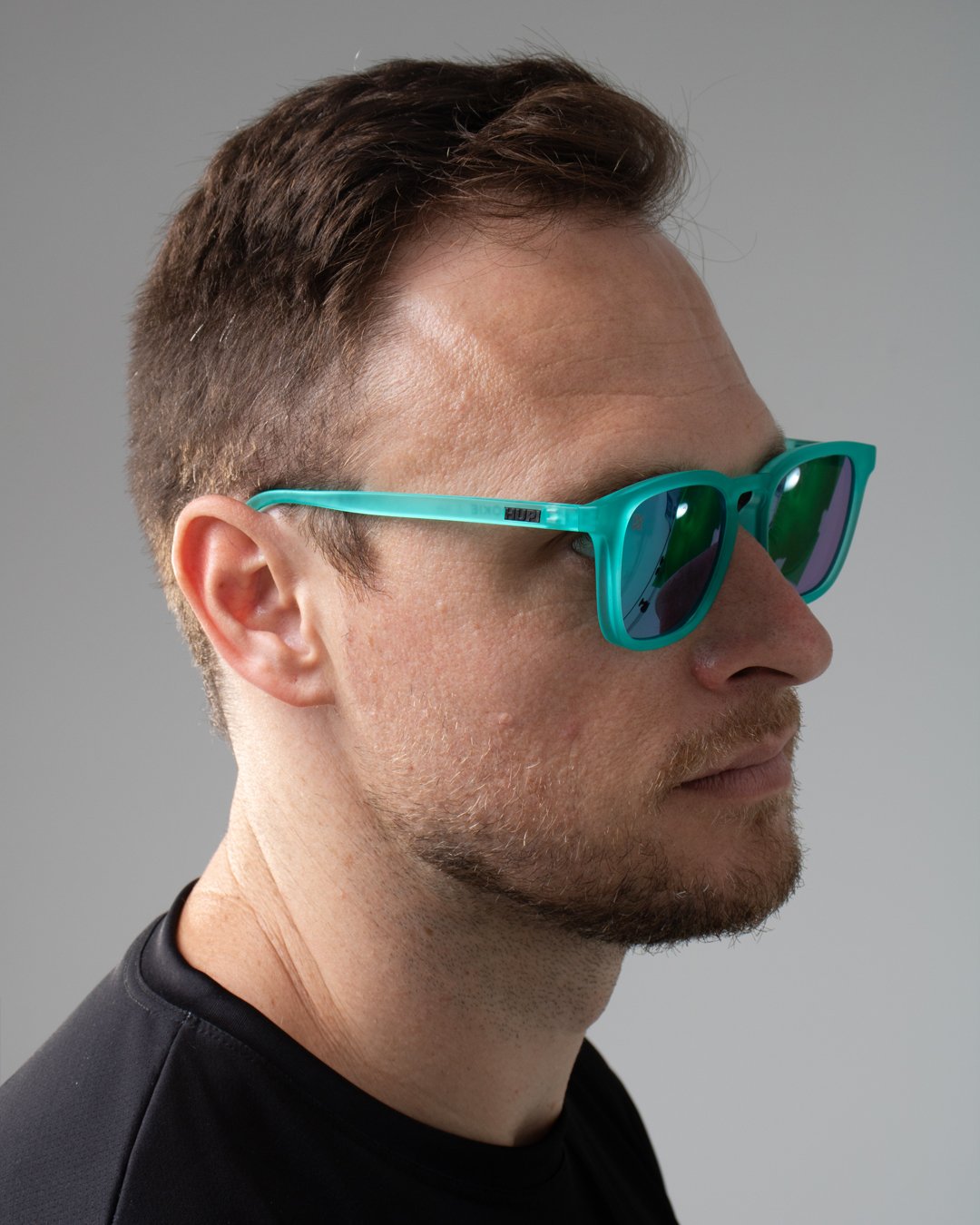 A estrutura do Óculos HUPI Rookie Verde Lente Verde Espelhado é produzida em policarbonato verde cristalizado, material reconhecido pela combinação entre resistência e baixo peso. Toda a armação e as hastes recebem acabamento soft touch, criando uma superfície emborrachada que melhora o contato com o rosto, reduz o deslizamento e aumenta a estabilidade durante a corrida e outras atividades em movimento.