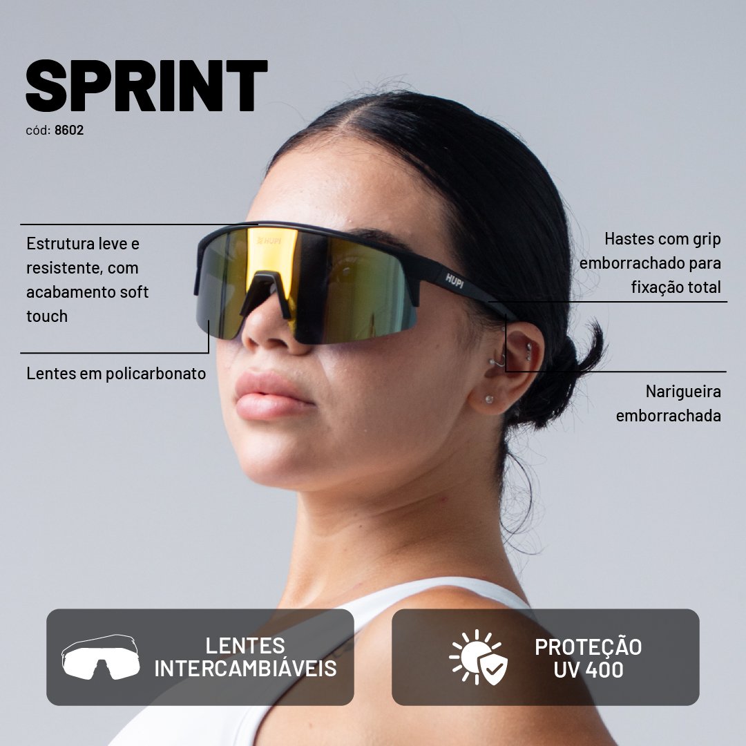 Ideal como óculos de corrida masculino e óculos de corrida feminino, o Sprint pode ser utilizado em corrida de rua, treinos intervalados, provas longas e ciclismo.