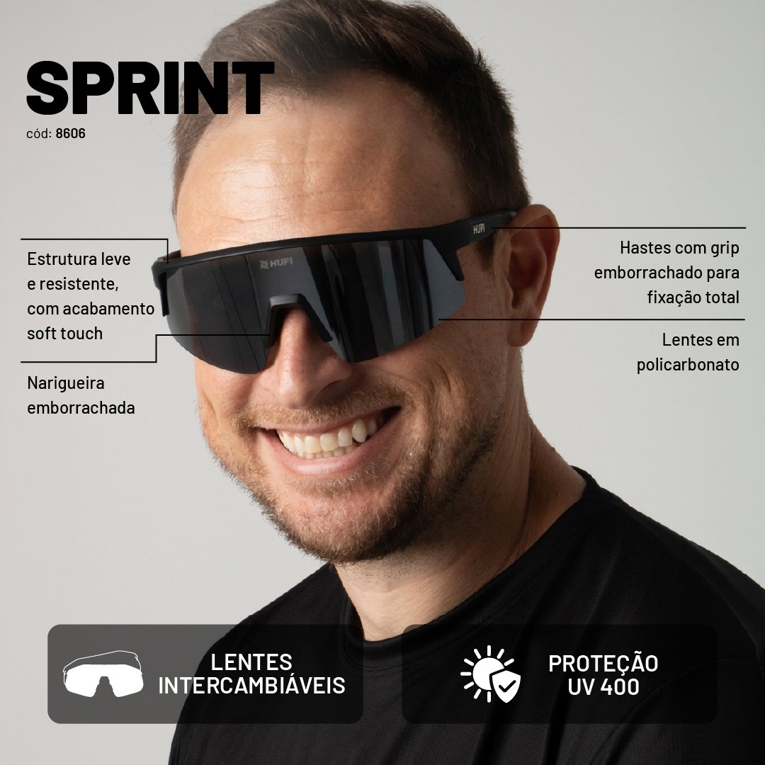 Ideal como óculos de corrida masculino e óculos de corrida feminino, o Sprint pode ser utilizado em corrida de rua, treinos intervalados, provas longas e ciclismo.