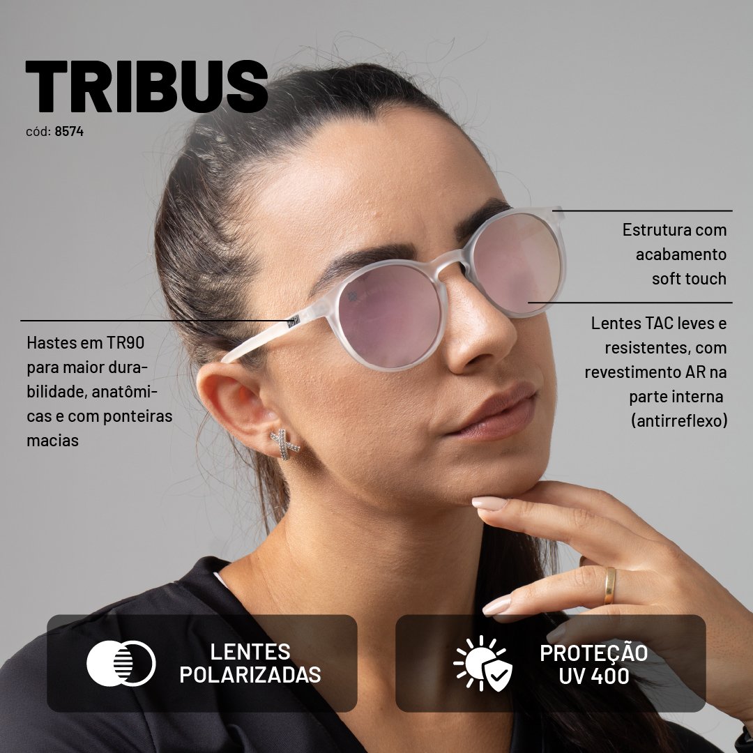 As lentes em TAC, Triacetato de Celulose, são leves, resistentes a impactos e contam com proteção UV400, bloqueando 100% dos raios UVA e UVB. A lente rosa espelhada reduz o brilho excessivo, melhora a percepção de contraste em ambientes claros e adiciona um diferencial visual marcante. Além de estética, ela entrega conforto visual eficiente em dias de sol intenso.