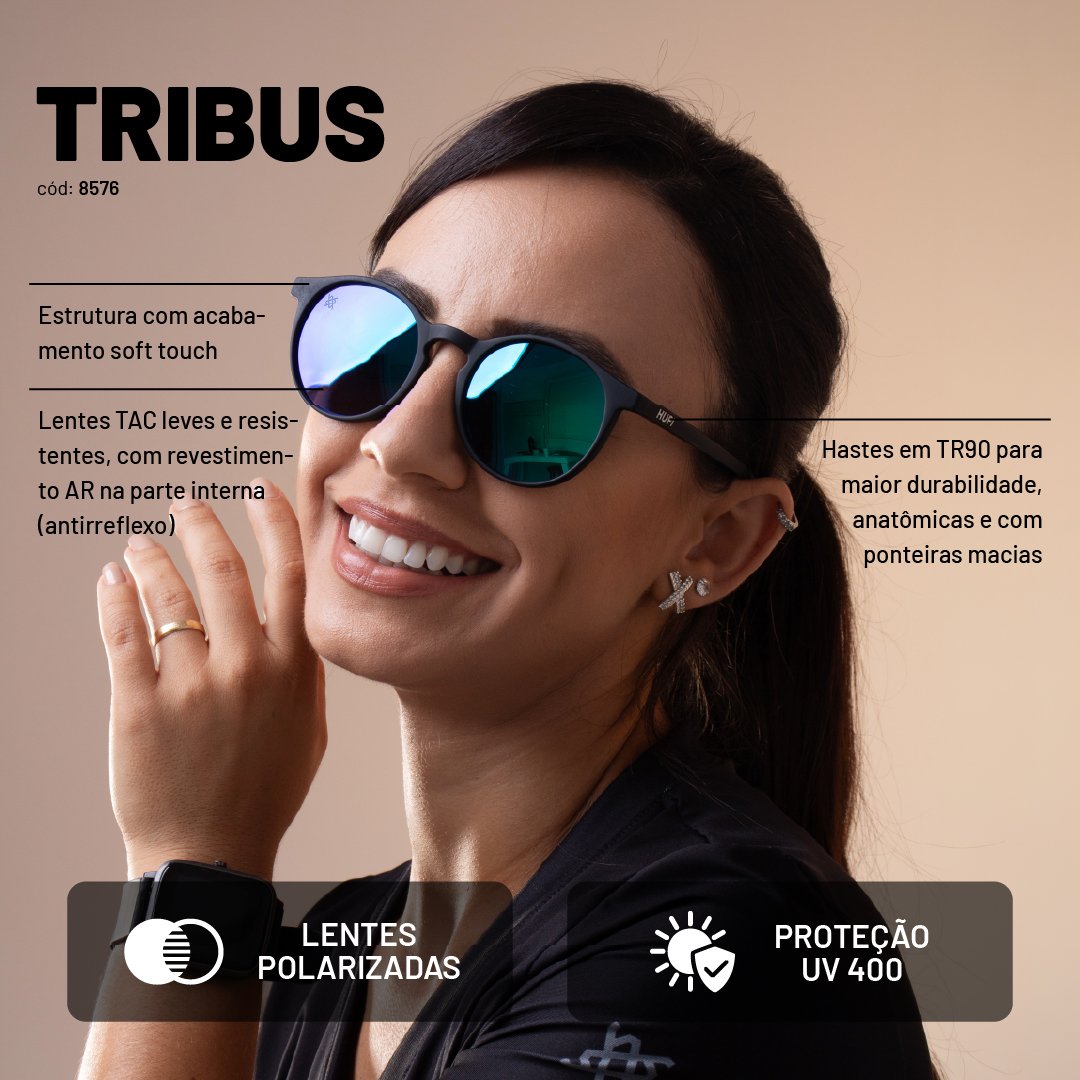 Especificações Técnicas do Óculos HUPI Tribus Preto Lente Verde Espelhado