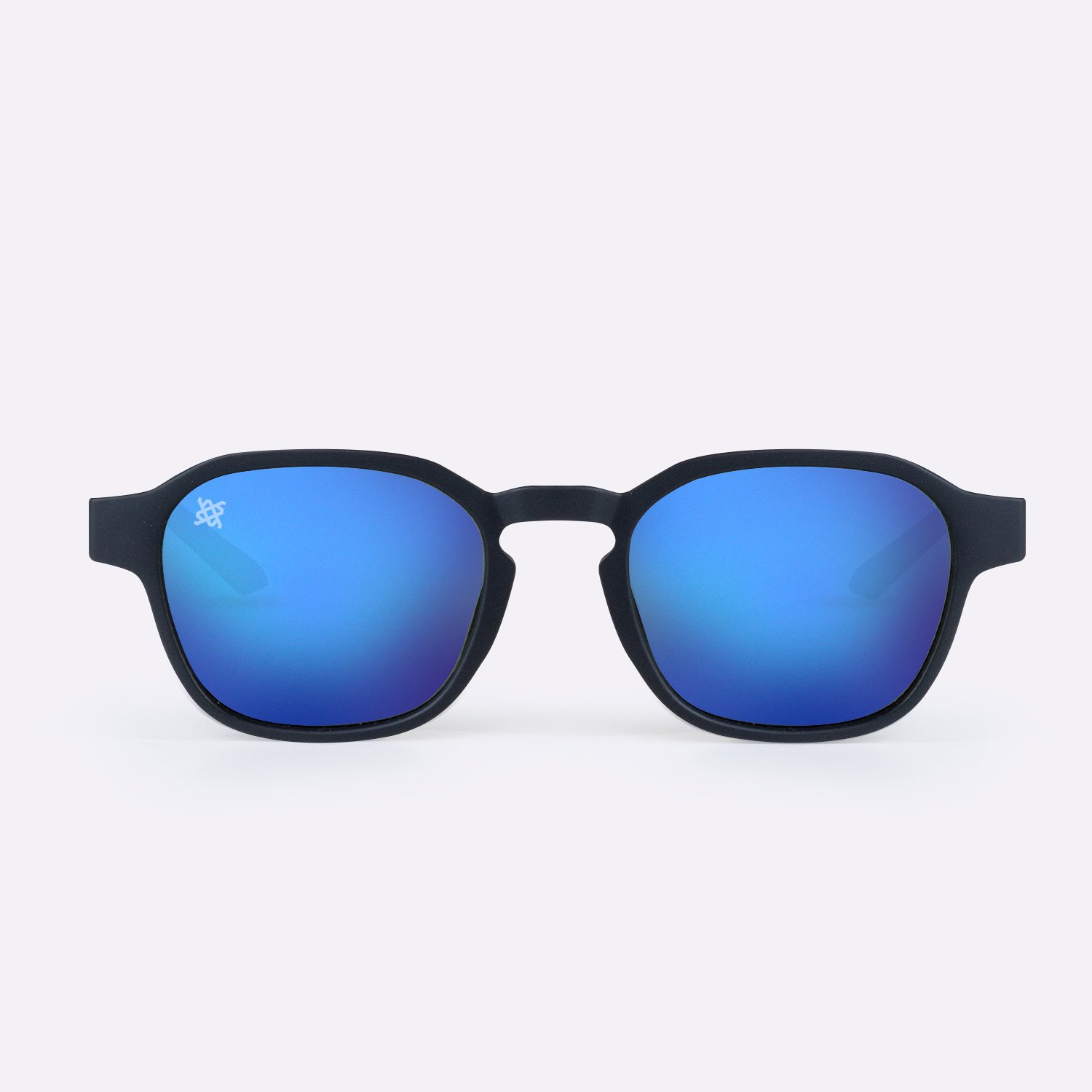 A armação preta com acabamento fosco em soft touch transmite modernidade e sobriedade, enquanto a lente azul espelhada adiciona personalidade e proteção contra alta luminosidade. É um modelo versátil, que transita com naturalidade entre o lifestyle urbano e momentos esportivos, mantendo equilíbrio entre forma e função.