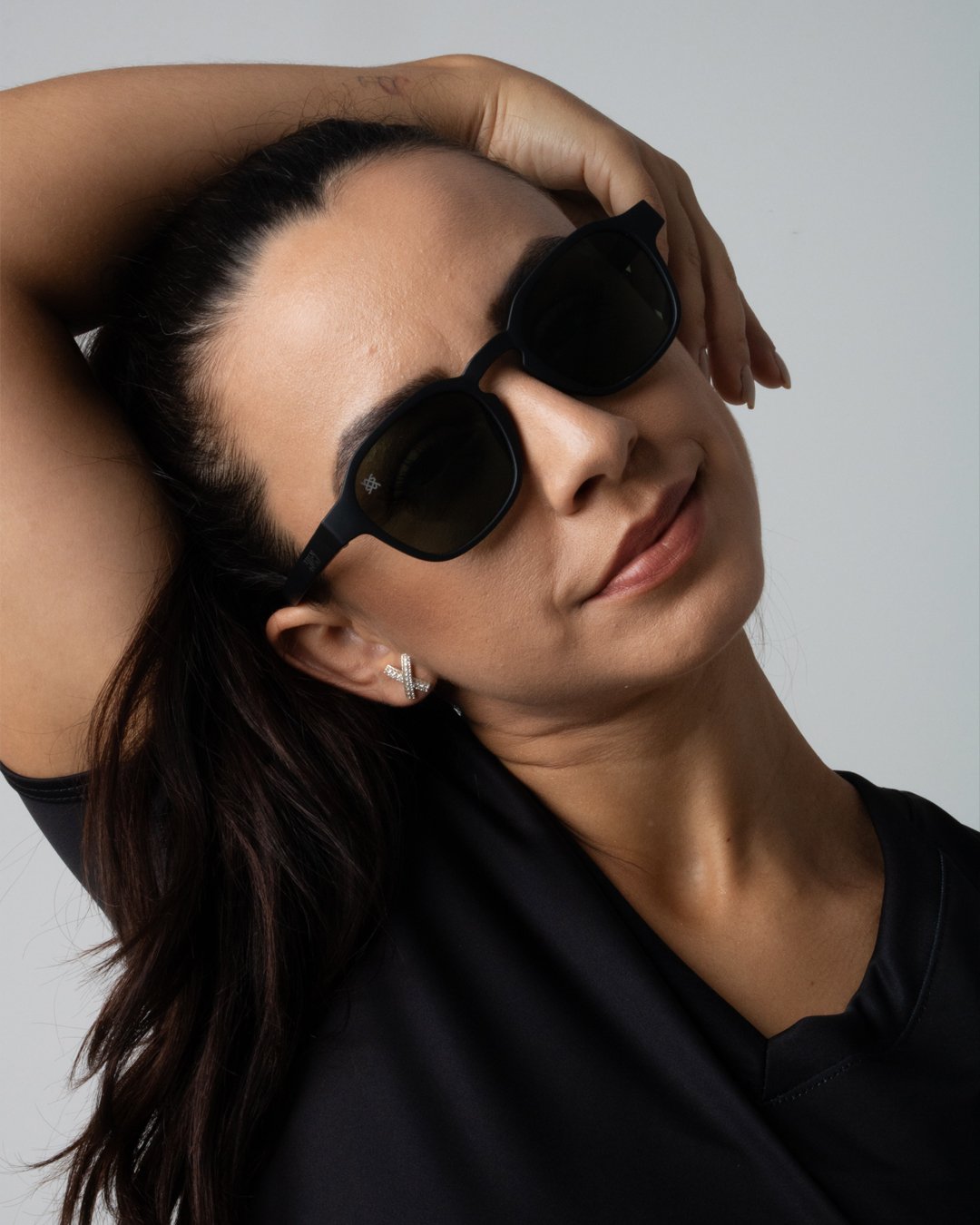 A armação preta reforça uma proposta mais atemporal e sofisticada, enquanto a lente verde proporciona conforto visual e controle de luminosidade em ambientes externos. Ele se encaixa perfeitamente no uso casual, mas também pode ser utilizado como óculos de corrida em treinos leves e caminhadas ao ar livre.