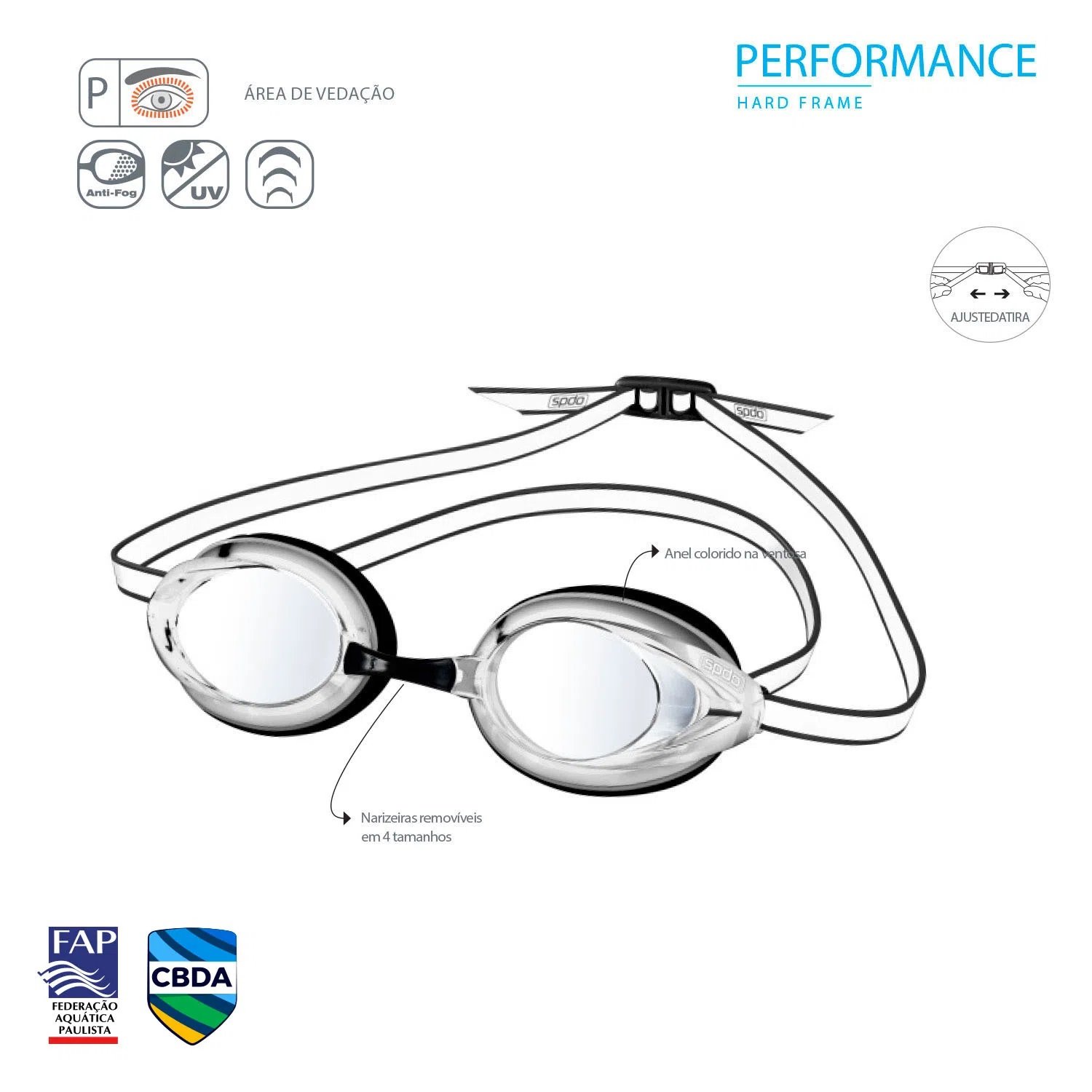 Aproveite ao máximo sua performance usando Speedo CHAMP óculos com proteção UV e tratamento antiembaçante (anti-fog), projetado para mantê-lo concentrado nas braçadas. Este modelo veste diferentes formatos de rostos, sendo conforto o atributo essencial. Indicado para nadadores frequentes que buscam desempenho. Possui narizeira removível em 4 tamanhos para melhor adaptação, tiras duplas para melhor fixação na cabeça. Área de vedação tamanho P (a vedação ocorre em pequena área ao redor dos olhos).