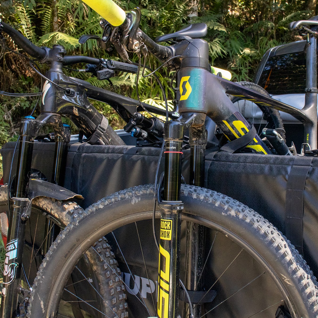 O Picape Pad Grande HUPI Preto foi desenvolvido para ciclistas que transportam suas bikes com frequência e buscam uma proteção robusta tanto para a bicicleta quanto para a caçamba da picape.