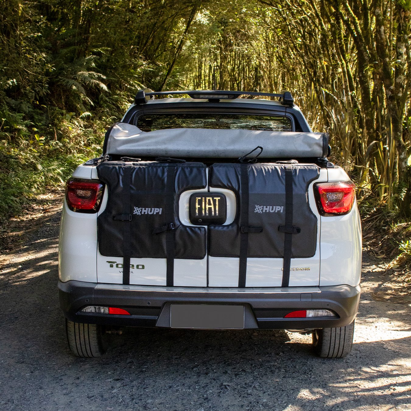 Proteção sob medida para Fiat Toro: Encaixe perfeito em ambos os lados da tampa bipartida.