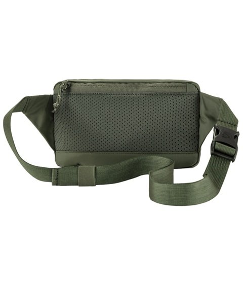 A Pochete High Coast Verde Militar pode ser usada de duas formas: ajustada à cintura para atividades esportivas, caminhadas e treinos, ou cruzada no peito para um visual mais urbano e moderno.