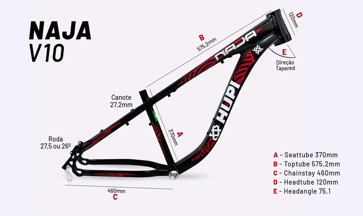 Especificações Técnicas do Quadro HUPI Naja V10 Preto Gancheira Vertical