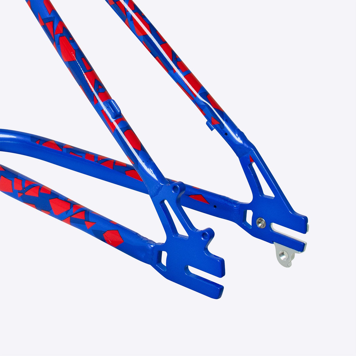 Combinando inovação, resistência e design impactante, o Quadro HUPI Naja V9 Azul/Vermelho é a base ideal para uma bicicleta personalizada e de alto desempenho.