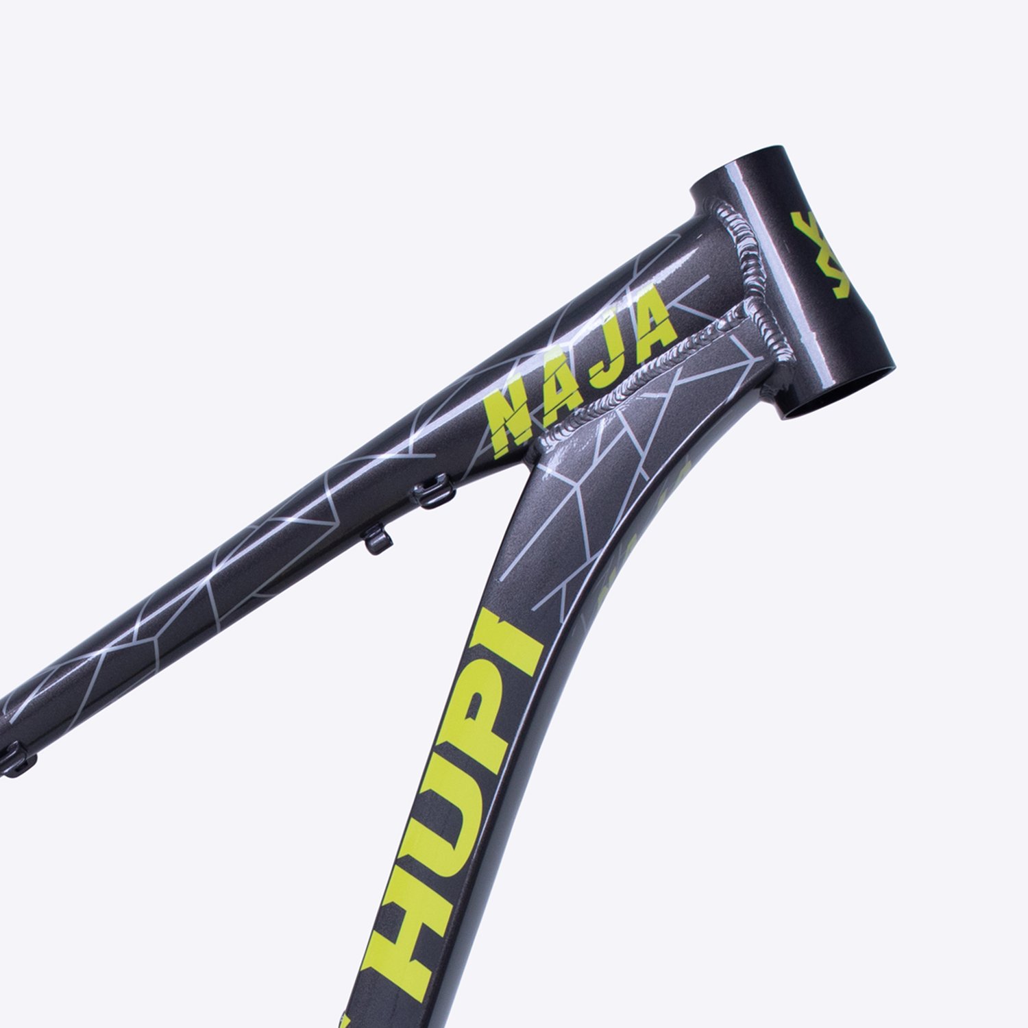 Mais do que um simples quadro, o Quadro HUPI Naja V9 Grafite/Amarelo é a base ideal para uma bicicleta personalizada e de alto desempenho.