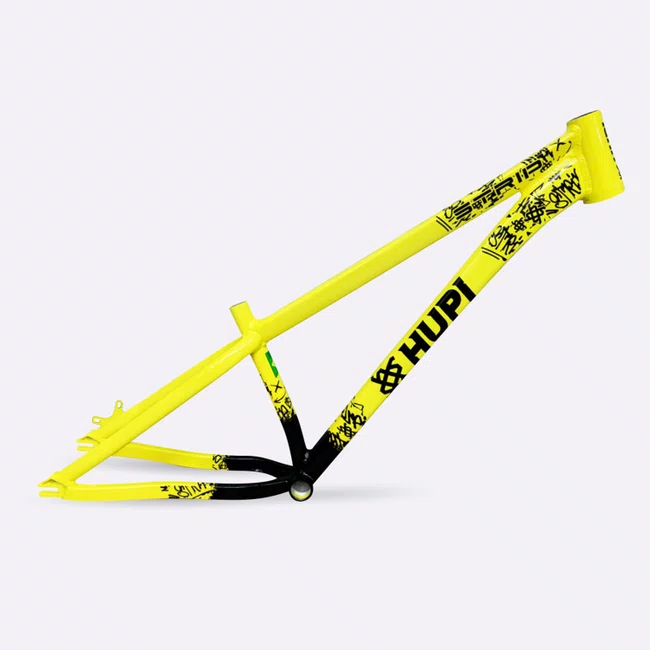 Além da estrutura robusta, o design com grafismos HUPI cria uma identidade visual forte, permitindo montar bicicletas com estilo e personalidade.