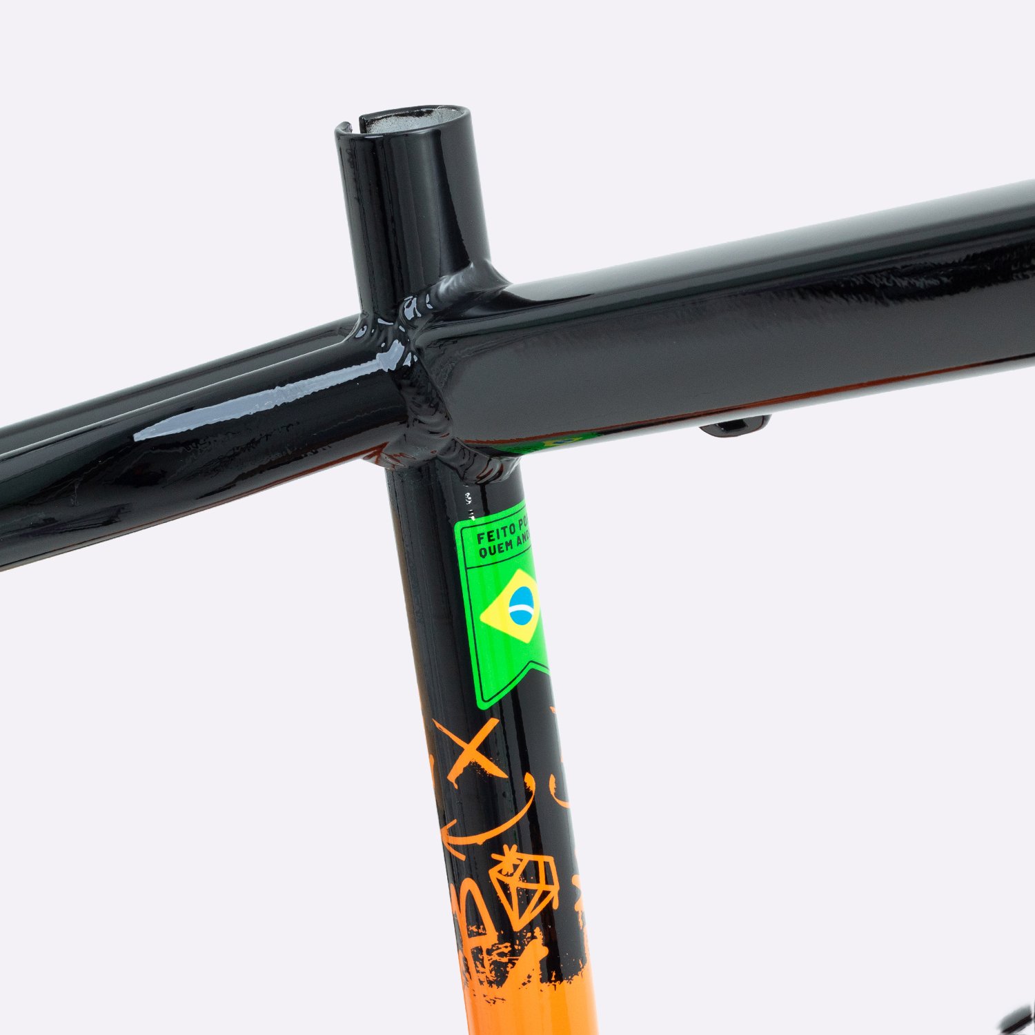 Além da estrutura robusta, o design com grafismos HUPI cria uma identidade visual forte, permitindo montar bicicletas com estilo e personalidade.