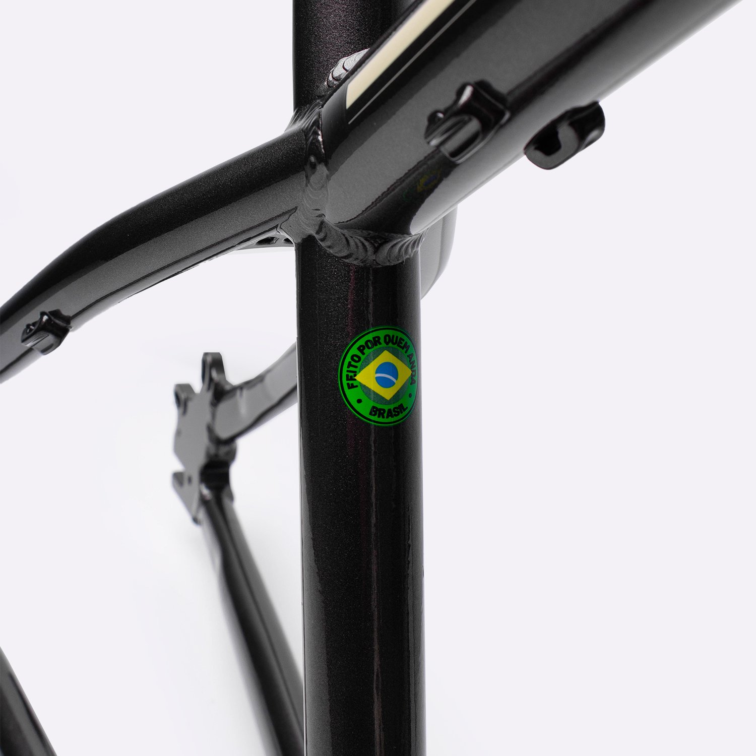 Design robusto: Estrutura reforçada no toptube, downtube, seatstay e chainstay para maior resistência e performance.