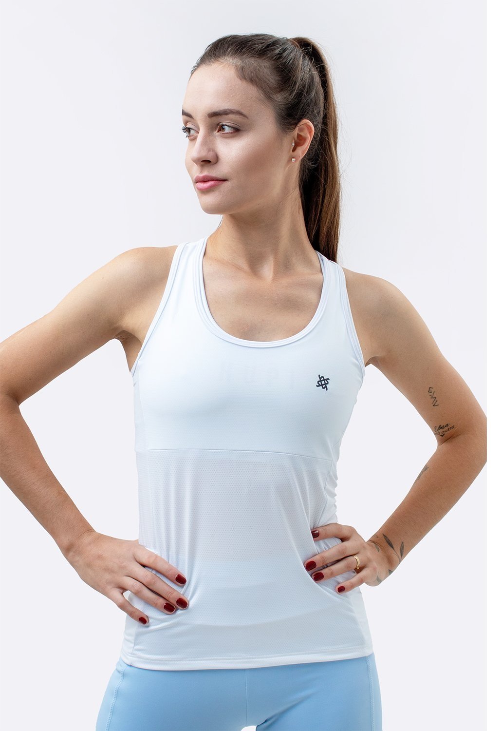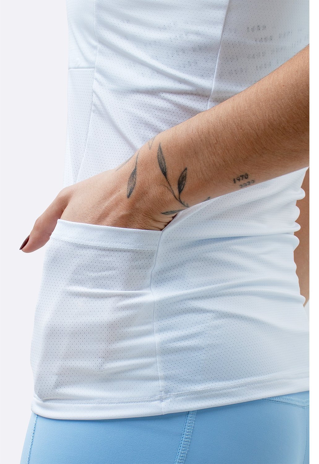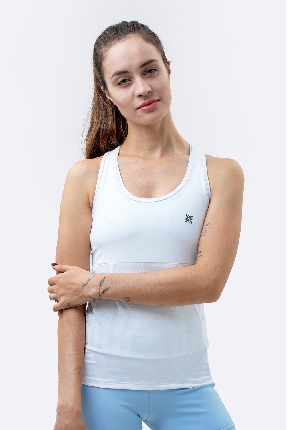 Com costas estilo nadador, recortes anatômicos e dois bolsos laterais embutidos, ela garante total mobilidade, visual esportivo moderno e espaço funcional para carregar pequenos itens com segurança.