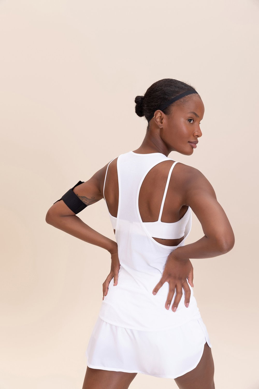 A Regata Live Icon Comfort Branco Feminina é confeccionada com materiais de ponta, como o tecido Sensil®, que alia durabilidade, toque macio e sustentabilidade.