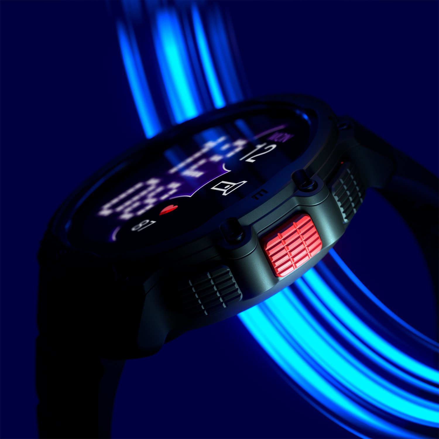 Além do visual esportivo e sofisticado, o modelo se destaca por unir recursos que realmente agregam valor na experiência de uso. A tela touch AMOLED de 1.28 polegadas oferece leitura nítida e excelente definição, enquanto o Gorilla Glass 3 adiciona uma camada extra de proteção para encarar a rotina com mais segurança. Já a estrutura leve, combinada à resistência à água de até 50 metros e à certificação militar, reforça a sensação de confiabilidade em diferentes cenários de uso.
