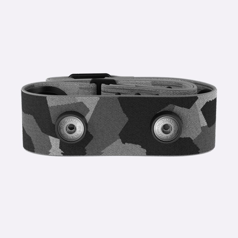 Conector: ABS, ABS + GF, PC, aço inoxidável. Cinta: 38% poliamida, 29% poliuretano, 20% elastano, 13% poliéster, impressões de silicone.