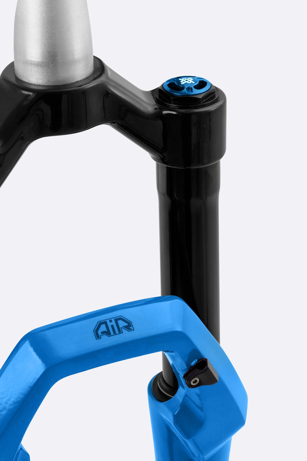 Sua construção utiliza monobloco em liga de magnésio, hastes de alumínio 6082-T6 anodizado de 32mm e tubo superior tratado com shot peening.