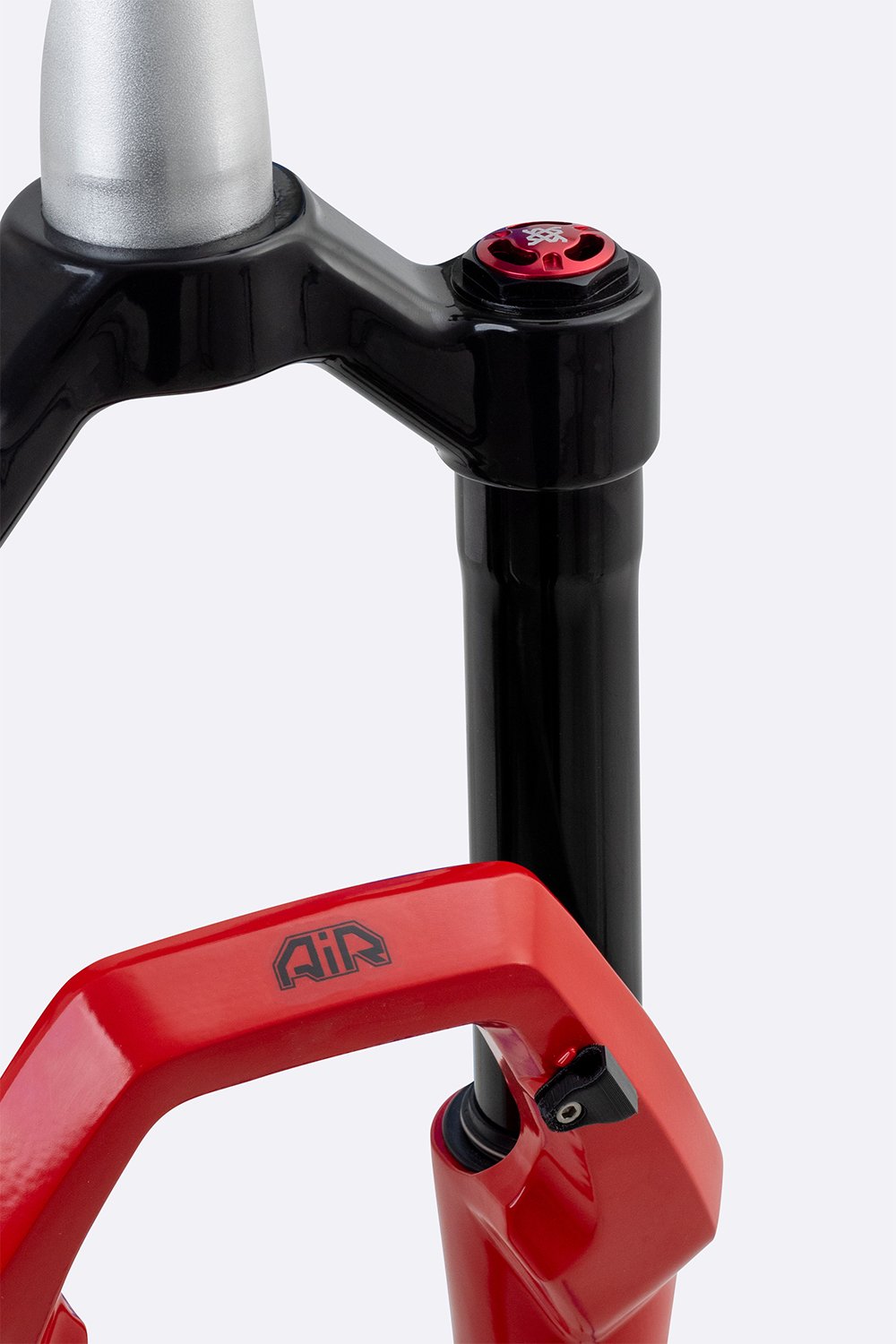 Sua construção utiliza monobloco em liga de magnésio, hastes de alumínio 6082-T6 anodizado de 32mm e tubo superior tratado com shot peening.