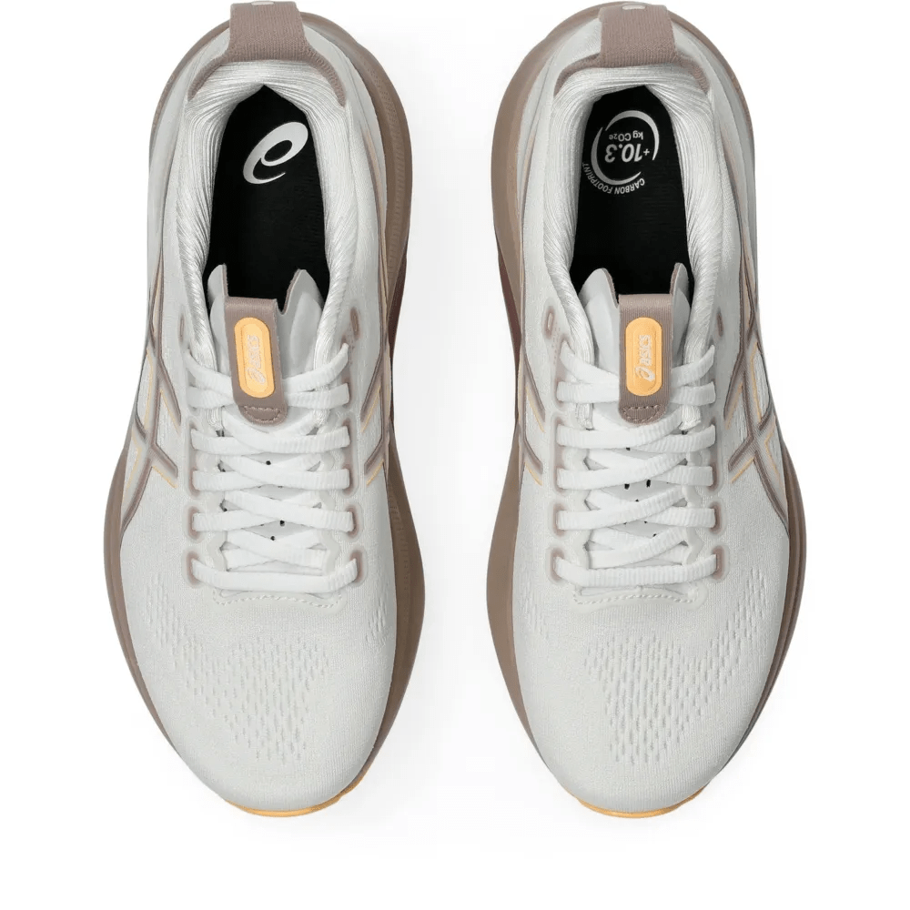 Materiais e Tecnologia do Tênis ASICS GEL-Kayano 32 - Feminino - Branco/Laranja