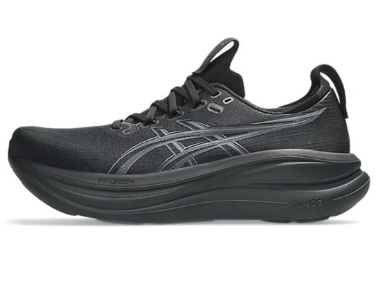 Na entressola, a combinação das espumas FF BLAST PLUS com a tecnologia PureGEL cria um sistema de amortecimento extremamente macio, leve e responsivo. A tecnologia PureGEL, 65 por cento mais suave que o GEL tradicional, garante absorção superior de impacto e uma transição mais suave entre as passadas. O FF BLAST PLUS complementa essa sensação com um toque elástico e responsivo, tornando o ciclo de passada mais dinâmico sem perder maciez.