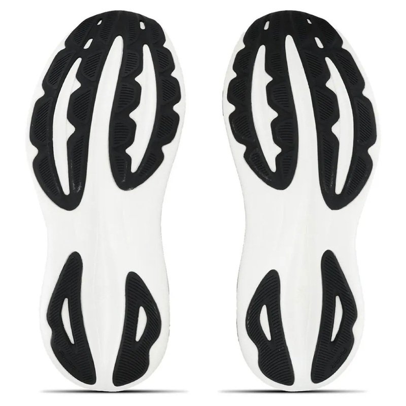 O solado foi projetado para oferecer aderência e durabilidade, contribuindo para passadas mais seguras durante corridas em diferentes tipos de superfície.