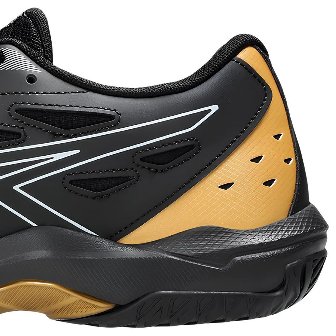 Design e Materiais do Tênis Asics Gel Rocket 11 Preto Dourado Masculino