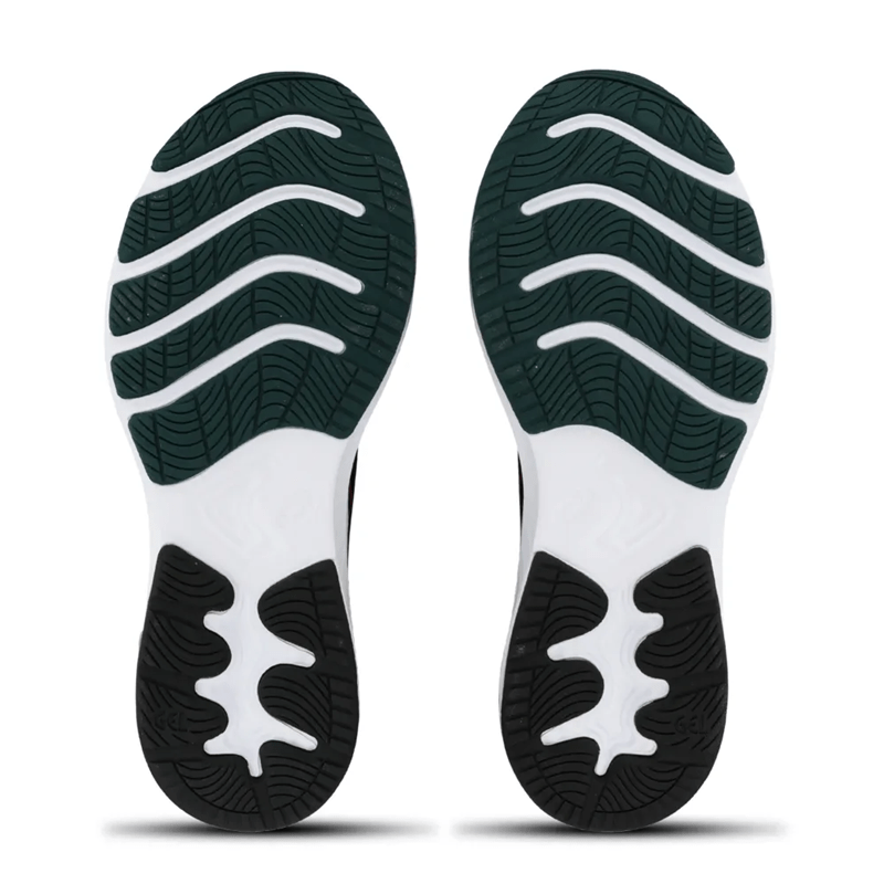 Solado de Borracha Resistente: Oferece tração eficiente e maior durabilidade para corridas em asfalto e terrenos urbanos.