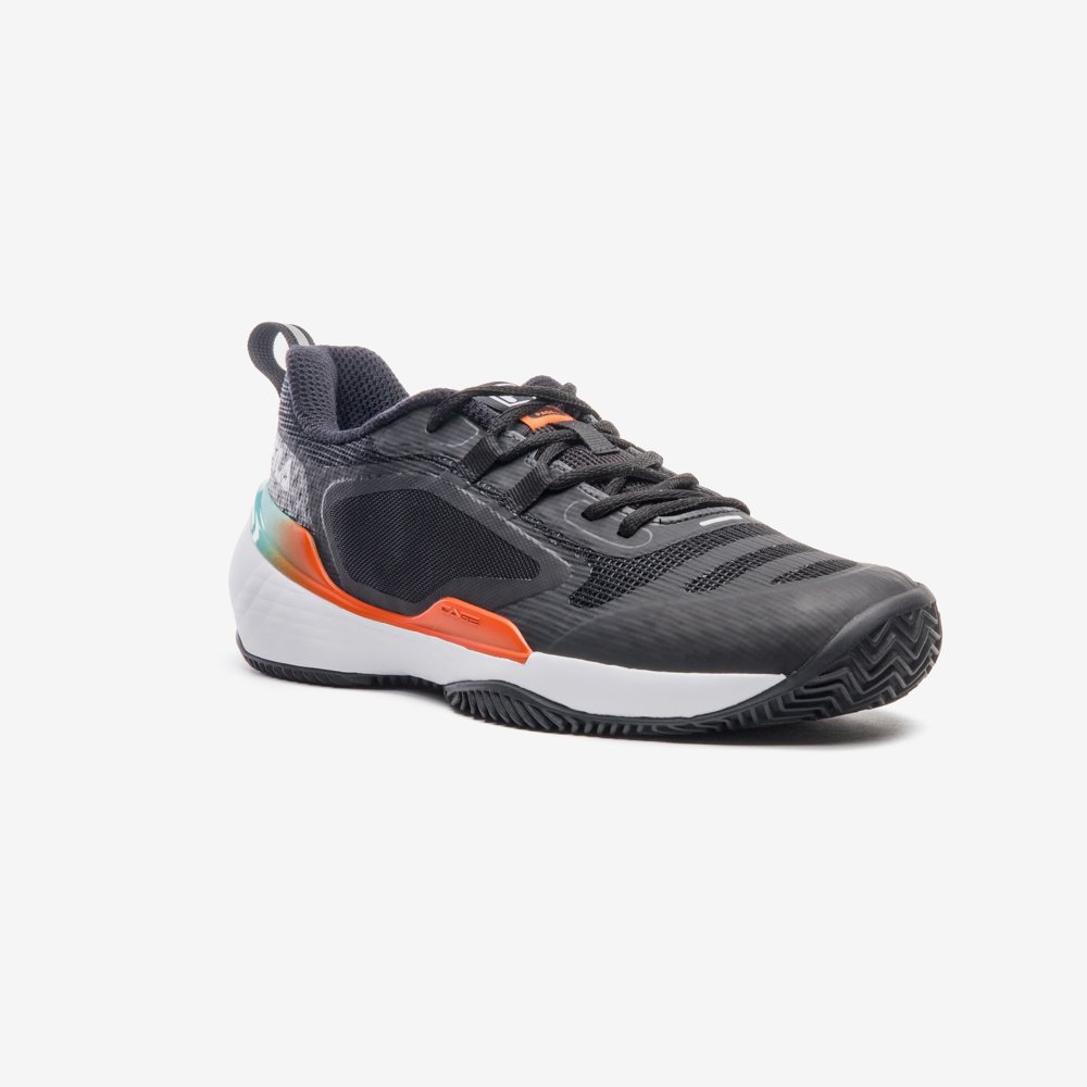 A entressola em EVA proporciona um amortecimento eficiente, enquanto o solado EVER-GRIP entrega aderência e durabilidade, otimizando a performance em quadras de saibro.