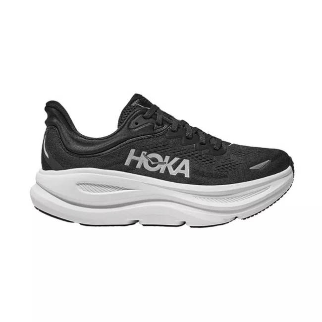 O Tênis HOKA Bondi 9 Feminino Preto e Branco é a prova de que conforto extremo e performance podem caminhar lado a lado.