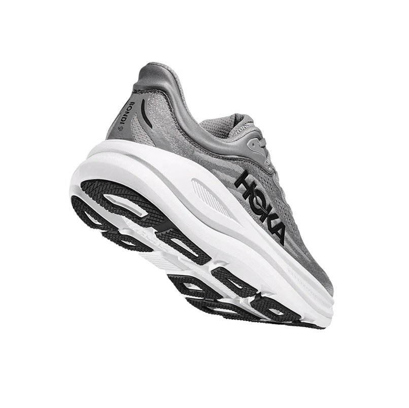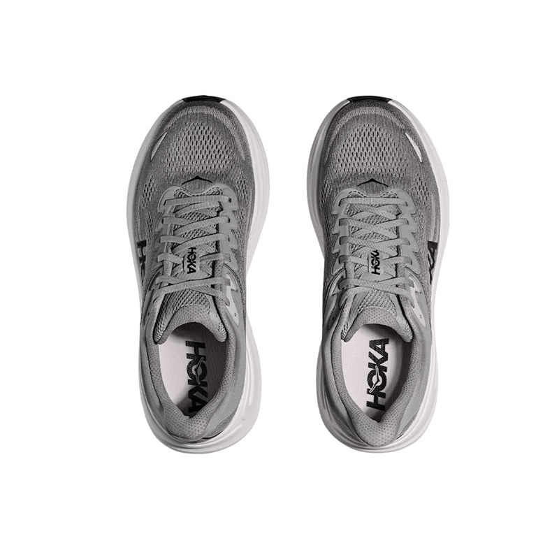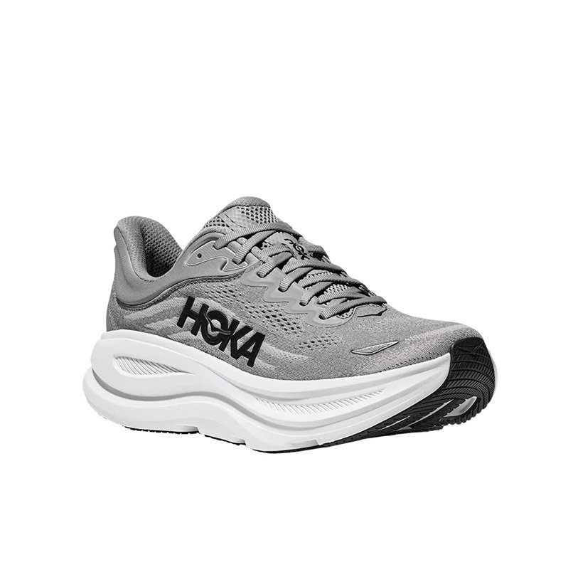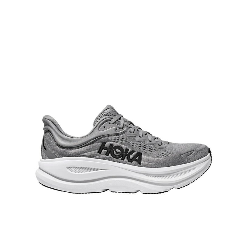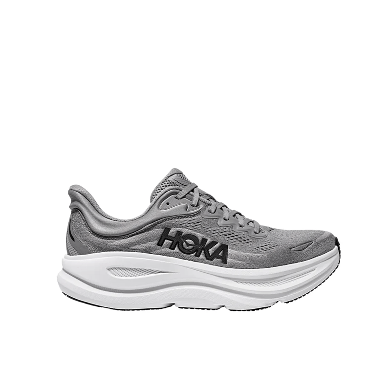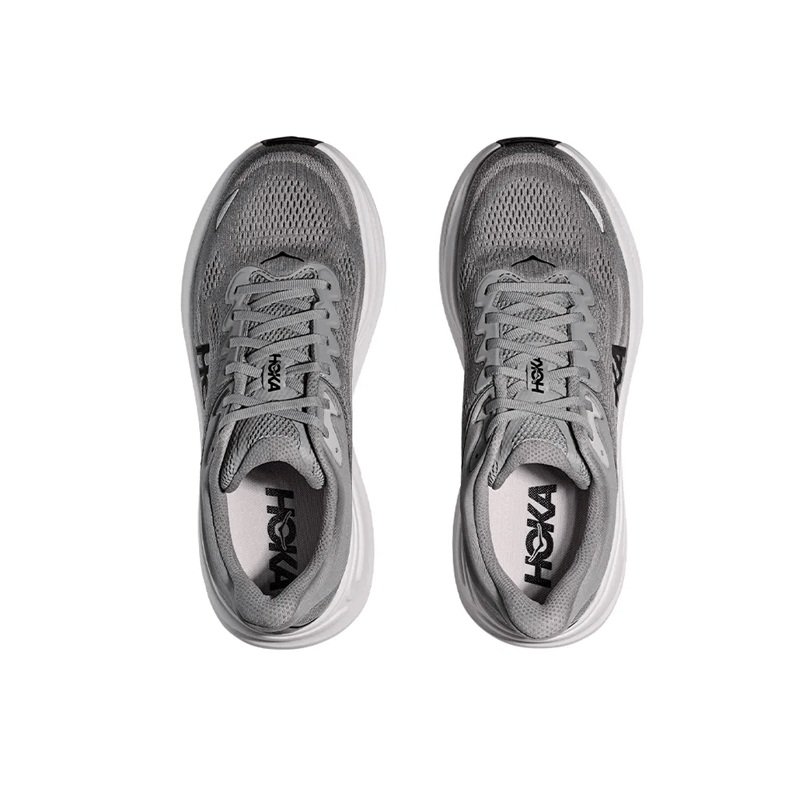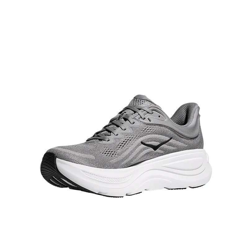 O Tênis HOKA Bondi 9 Masculino Cinza é a escolha definitiva para quem busca conforto extremo sem abrir mão da leveza.