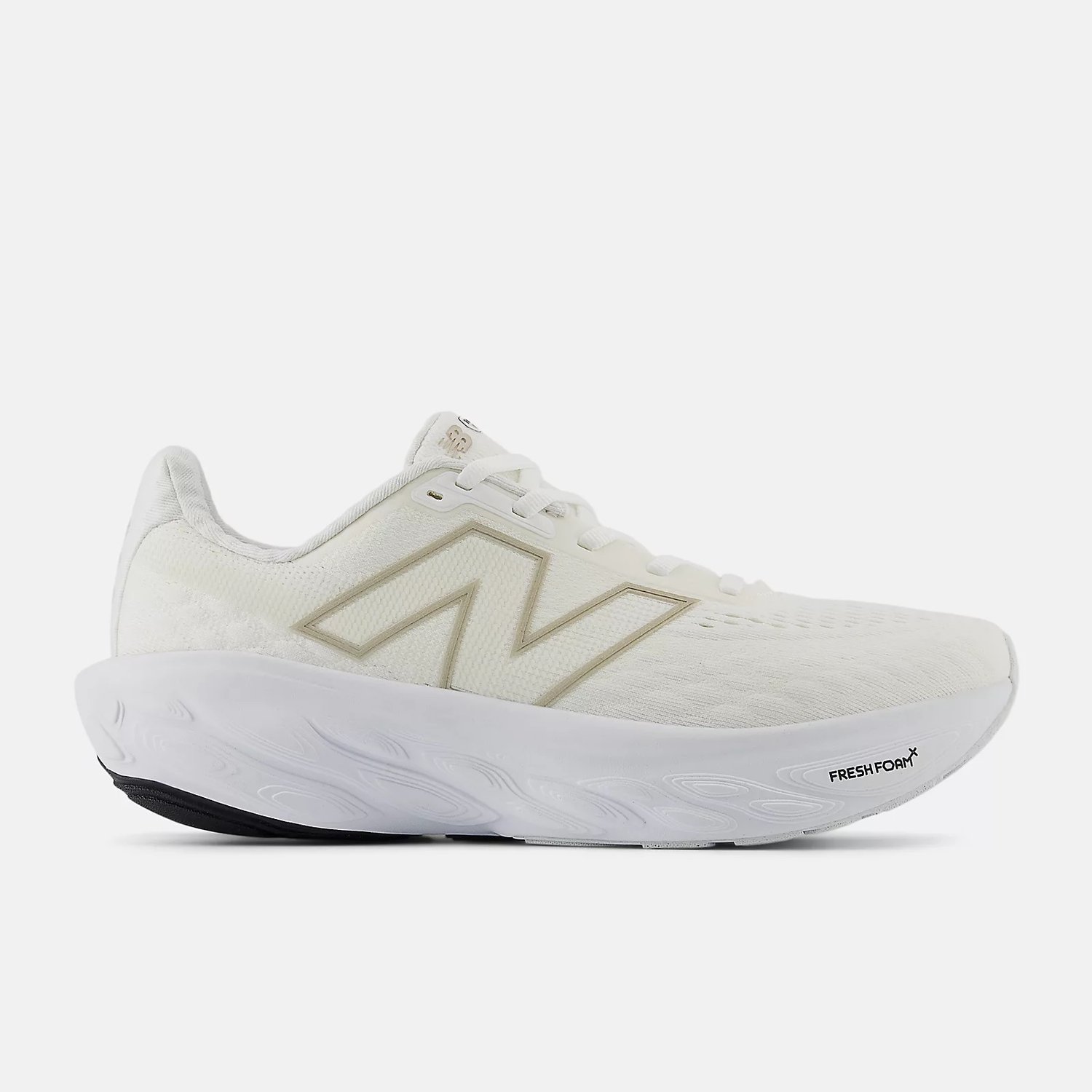O Tênis New Balance Fresh Foam X 1080 V14 Bege/Branco Feminino foi desenvolvido para proporcionar conforto, alta performance e um visual moderno.