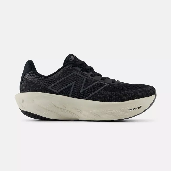 O visual moderno e sofisticado do Fresh Foam X 1080 V14 traz uma combinação elegante entre preto e detalhes em bege claro, tornando-o versátil para treinos ou combinações casuais.