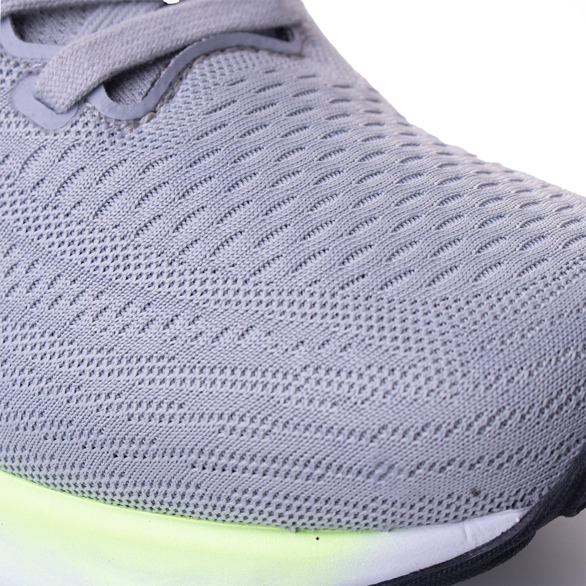 O cabedal do tênis é feito em Engineered Mesh, um material que combina respirabilidade e elasticidade, garantindo conforto e ajuste personalizado aos pés. O design moderno e elegante do tênis é complementado pela combinação de cores Cinza/Verde, adicionando um toque de estilo ao seu visual esportivo.