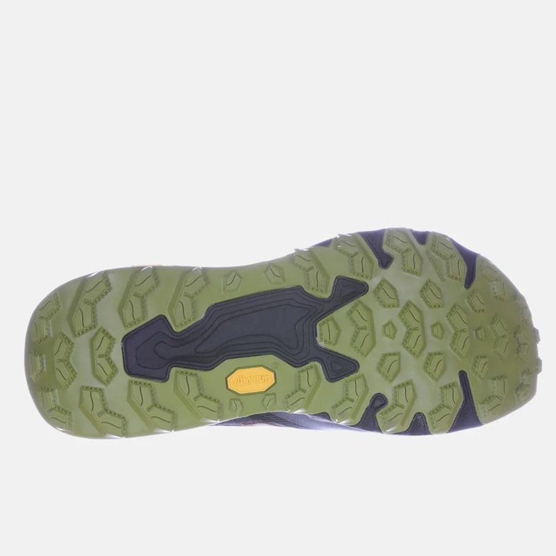 O grande destaque está no solado com tecnologia Vibram, que entrega tração superior e aderência confiável em superfícies molhadas, secas ou irregulares. A combinação de borracha resistente e desenho agressivo dos cravos melhora a estabilidade e o controle em descidas e subidas técnicas.
