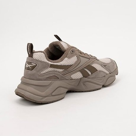 O grande destaque do Tênis Reebok Charge Run está no visual inspirado no running dos anos 2000. O cabedal em malha respirável combinado com sobreposições sintéticas e texturas que remetem à camurça cria um efeito em camadas muito interessante, reforçando a estética urbana e esportiva do modelo.